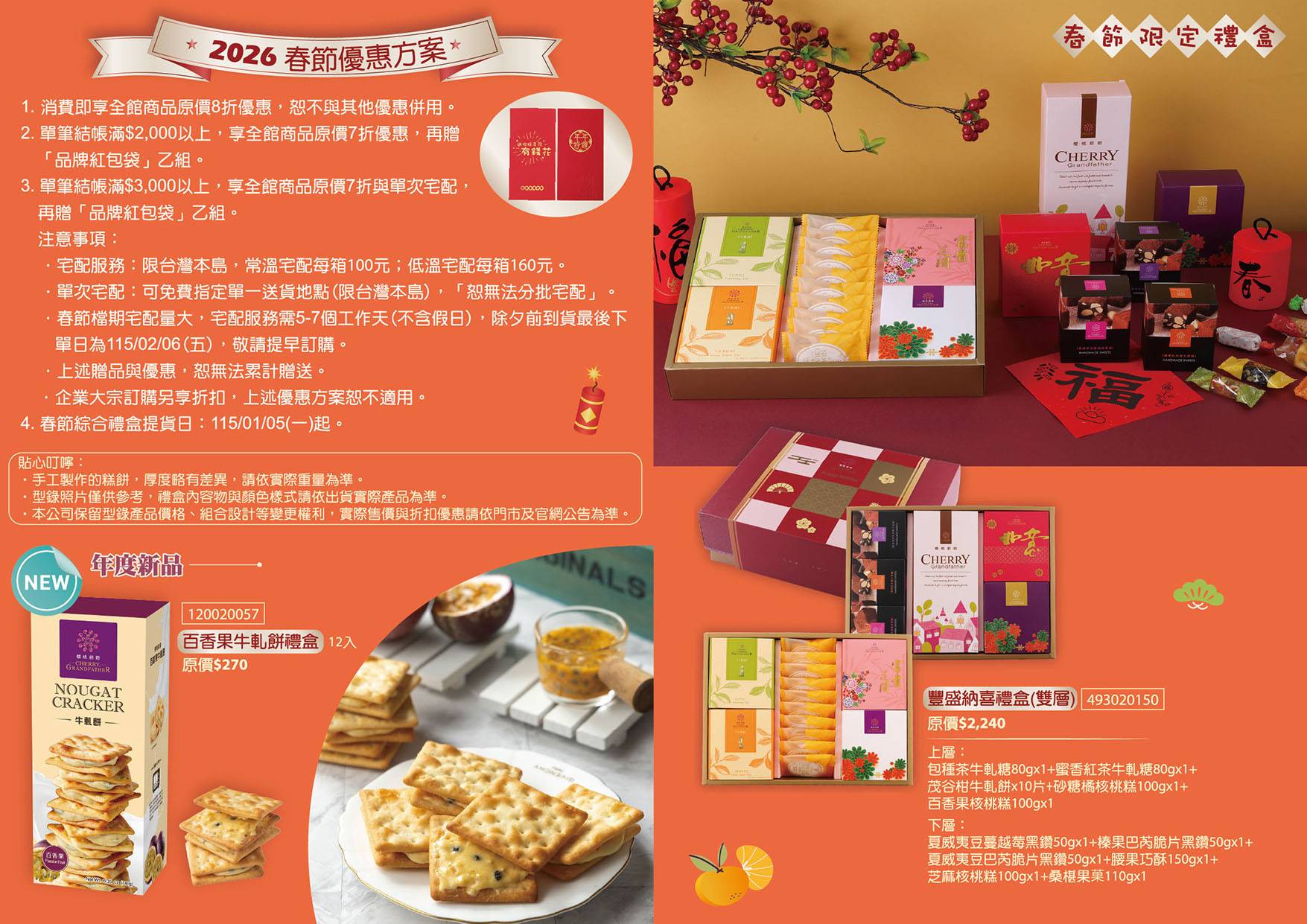 春節禮盒,年節禮盒,年節禮盒推薦,春節禮盒推薦,伴手禮,人氣,春節盒推薦,櫻桃爺爺禮盒,幸福商品,堅果塔,手工,堅果塔禮盒,火山豆, 春節團購,企業團購,核桃糕,牛軋糖,花生糖,腰果酥,牛軋餅,南棗核桃糕,包種茶,蜜香紅茶,紫蘇梅,茂谷柑,砂糖橘,果菓,芙緣餅,老婆餅,鳳梨酥,曲奇,巧克力,黑鑽