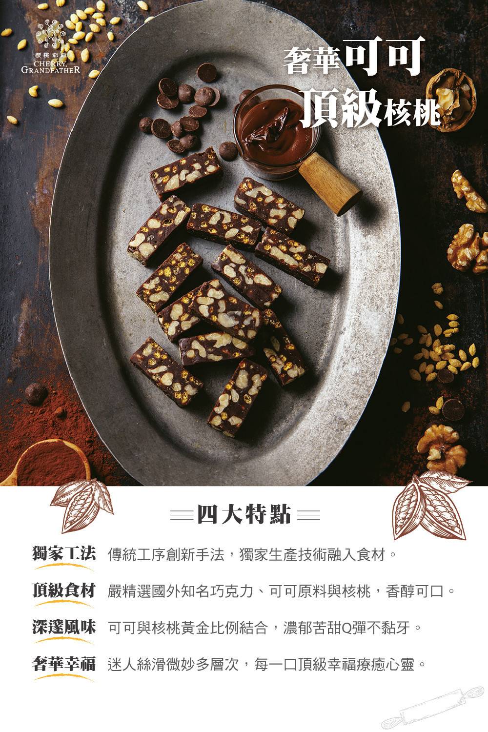3.深邃風味:可可與核桃黃金比例結合,濃郁苦甜Q彈不黏牙。