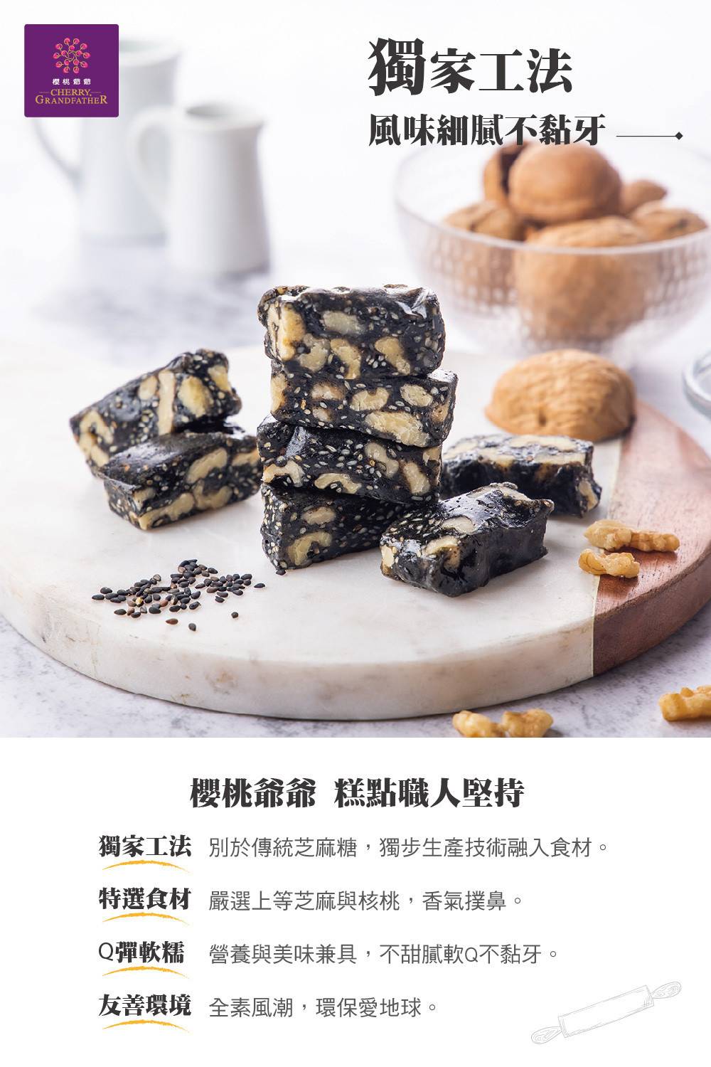 產品名稱:芝麻核桃糕(全素)