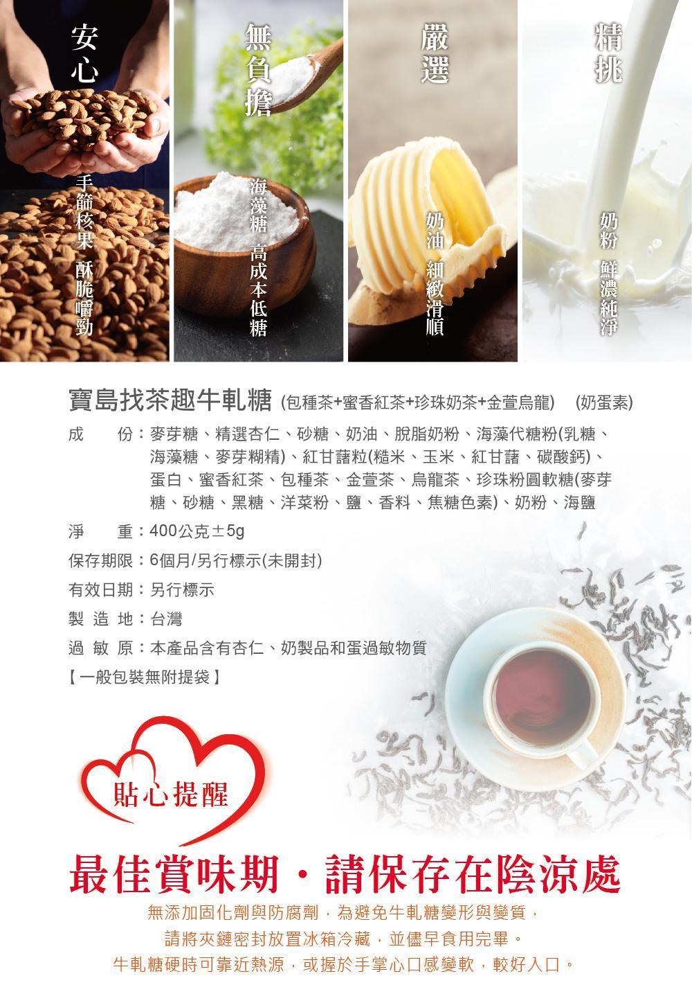 寶島找茶趣牛軋糖(包種茶、蜜香紅茶、金萱烏龍、珍珠奶茶) 400g