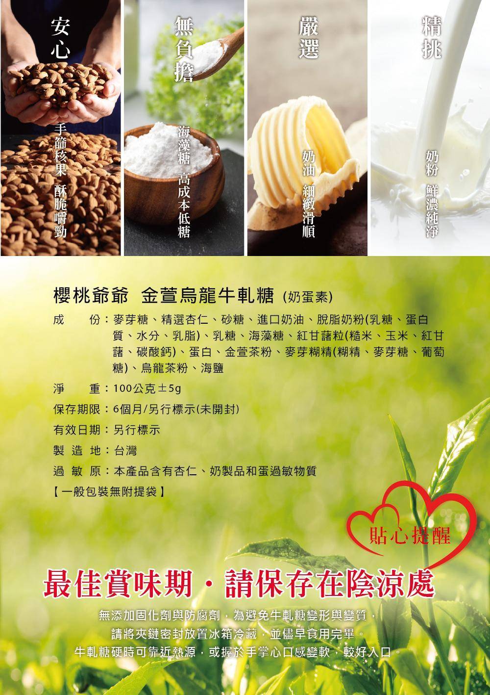 金萱烏龍,伴手禮,海藻糖,坪林,茶葉,台灣茶,茶系列,櫻桃爺爺,牛軋糖,手工,伴手禮,春節送禮,年糖,加州杏仁,紐西蘭奶粉,紐西蘭,Halal清真認證,穆斯林甜點,金萱,烏龍,複方茶,茶葉,坪林茶鄉,新北坪林,坪林金萱烏龍茶